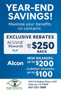 ACUVUE® Rewards: With qualifying purchases of ACUVUE® lenses, you can earn up to $250 back for an annual-supply purchase made between January 1–June 30, 2025.